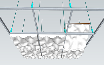 Cloud 2C uses GRP material molding, A level fire resistance, E0 environmental protection, color selection, and optional LED light star sky effect. Cloud 2C internal cavity combines with the ceiling cavity structure it can become a difference thickness lower frequency absorber.