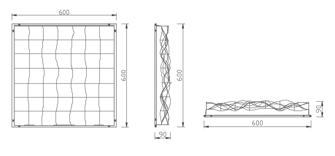 600mm (H) x 600mm (W) x 90mm (T)
