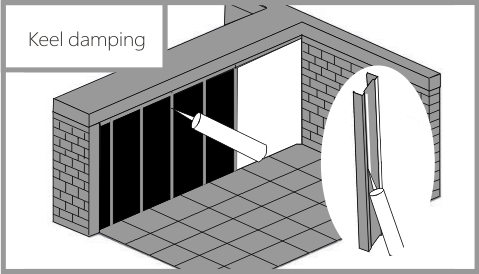 The installation joints of the sound insulation board are filled hermetically, and the wire conduit hole of the sound insulation structure layer and the ventilation pipe outlet of the air conditioner are sealed to prevent airborne sound leakage; the damping effect of the contact surface is increased to effectively eliminate the structure resonance when the metal keel and the sound insulation board are installed; the position is fixed when the ground vibration-absorbing adhesive and the sound insulation board are installed.