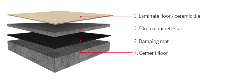 Sound insulation damping mat is easy and convenient to cut and lay, and 3 thicknesses of 3mm, 6mm and 12mm adapt to more different standard requirements. With the application of excellent support and damping, sound insulation damping mat meets the requirements of sound insulation and noise reduction for multi-story buildings.