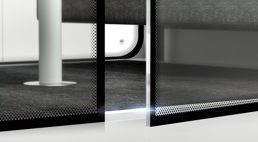Our booth is consistent with the standard of environmental rating Design value: Rw+Ctr 25 db (+5 db) and RT0.25 s (+0.1 s).